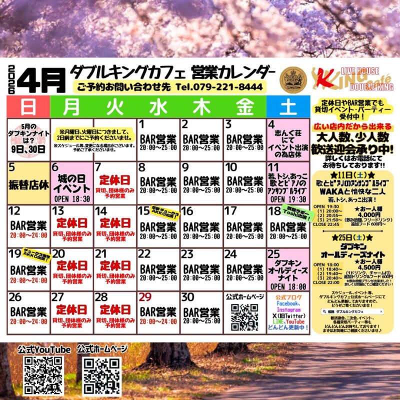 姫路 #最大級 #ライブハウス #オシャレ #レトロ #オールディーズ #イベント #スペース #貸切 #パーティー #二次会 #同窓会 #歓送迎会 #ダブルキングカフェ #ダブキン #大人数 #少人数 #広いステージ #カラオケ #歌い放題 #ショットバー #ドリンク #フード #スケジュール #楽しい #お待ちしております! #映え #スポット #姫路カフェ #姫路BAR
