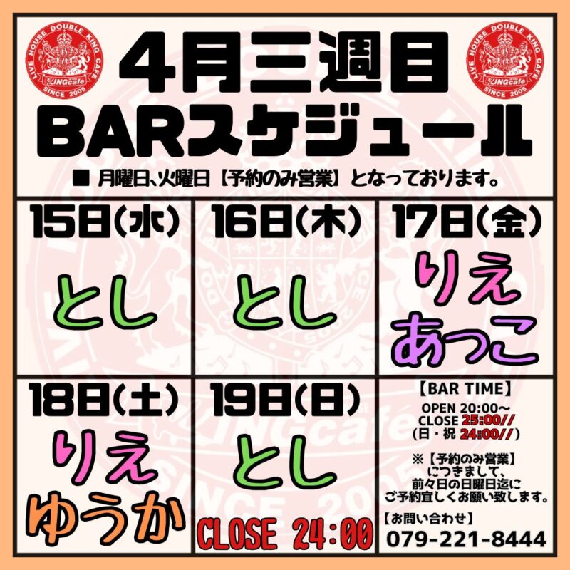 ![ライブハウス&イベントスペース ダブルキングカフェ[兵庫県姫路市] ライブハウス&イベントスペース ダブルキングカフェ[兵庫県姫路市]](https://kk-cafe.jp/cms/wp-content/uploads/2025/03/id-2025.png)